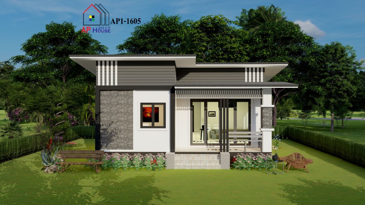 แบบบ้านชั้นเดียว กว้าง 6.00 เมตร ลึก 7.50 เมตร 45 ตรม. 1 ห้องนอน 1 ห้องน้ำ 1 ห้องรับแขก 1 ห้องเก็บของ มีเฉลียงหน้าบ้าน - 3,900