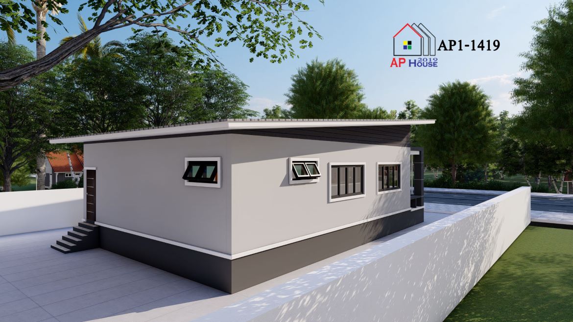 บ้านชั้นเดียวสไตล์โมเดิร์น ตัวบ้านบางส่วนตกแต่งด้วยหินตกแต่งผนังเพื่อเพิ่มความสวยงามให้แก่ตัวบ้าน (สนใจสั่งซื้อแบบบ้าน @ไลน์เบอร์ 0629975052) #ออกแบบบ้านโดย AP house 2019 #รับสร้างบ้าน #รับออกแบบบ้าน