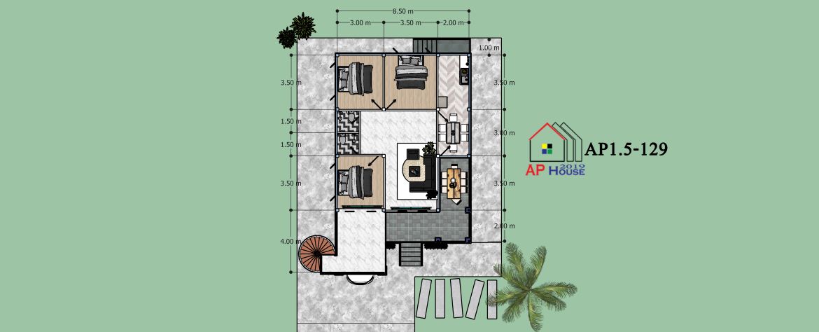 ขนาดตัวบ้าน : กว้าง 8.50 เมตร ลึก 14.00 เมตร