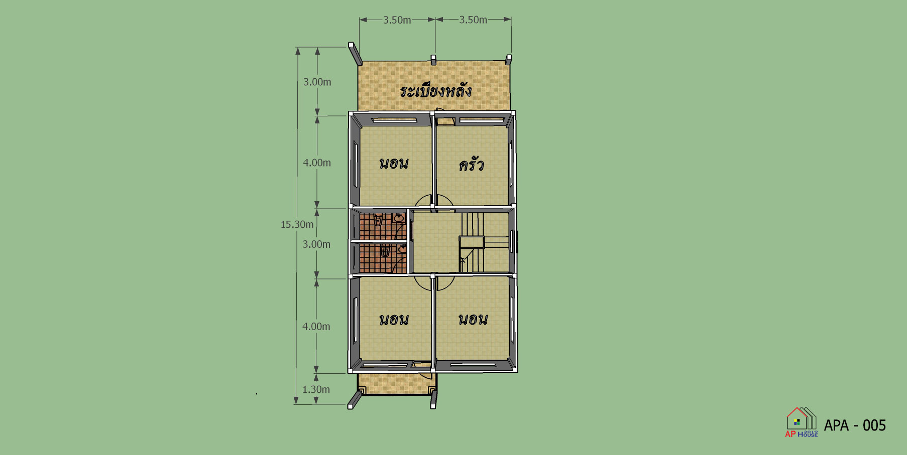 ขนาดตัวบ้าน : กว้าง 7.00 เมตร ลึก 15.30 เมตร
